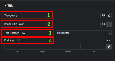 - Typography: Customize the font family, size, weight, and style for the image title.