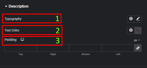 - Padding: Adjust the inner spacing around the description for better readability and layout control.
