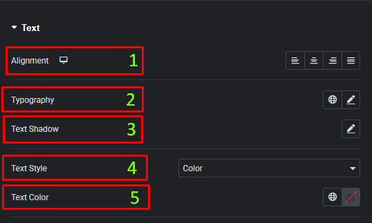 - Alignment: Set the text alignment for Desktop, Tablet, and Mobile.