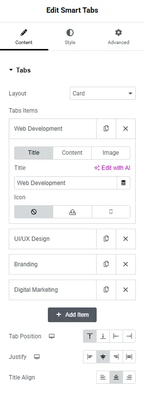Organize your content beautifully with our Icon Tabs. This smart, interactive widget lets users switch between sections effortlessly, combining sleek icons with smooth transitions for a modern, user-friendly experience.